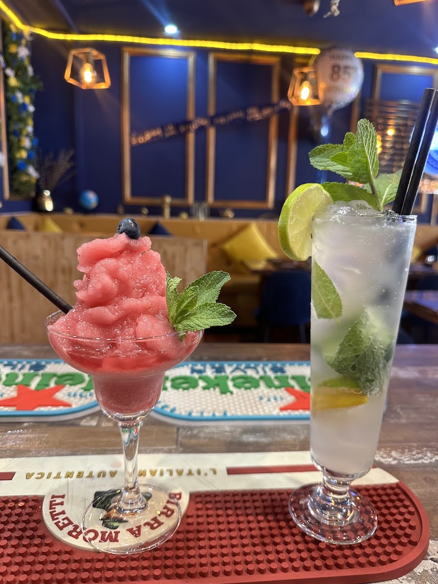 No meal is complete without a drink, and Türkiz Restaurant offers an excellent selection to complement its menu. From classic Irish Coffee to the refreshing Porn Star Martini, there’s a cocktail for every taste. If you prefer something lighter, their selection of Daiquiri and Mojito options are sure to refresh you. And if you're a wine enthusiast, you’ll be pleased with their impressive wine list, offering a range of reds and whites to pair perfectly with your meal.